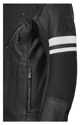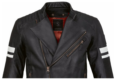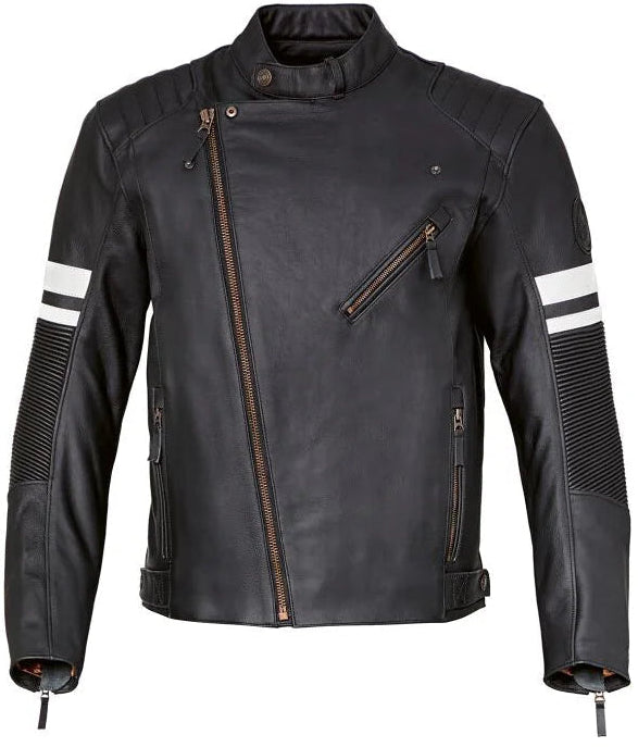 'High-quality and authentic - this is the Charlottenburg jacket. White twin stripes on the sleeves and copper-coloured details set fine visual accents. Besides having a high-quality look, the jacket is practical for everyday use. It sports three outside and inside pockets as well as NP Flex protectors on the shoulders and elbows.
